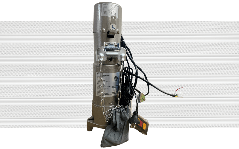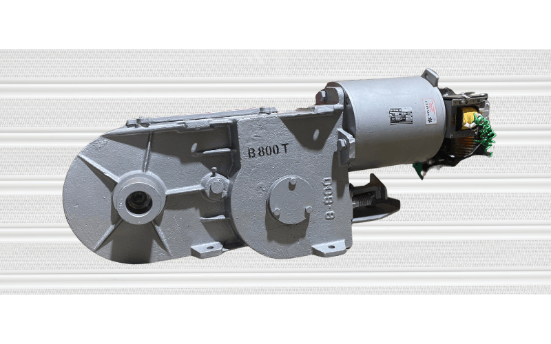 Equipo compacto con acople directo al eje. Engranaje, sin fín y corona dentro de una caja reductora en baño de grasa. Movimientos sobre rulemanes y bujes de bronce. Engranajes, piñones y ejes de acero. Corte límite de carrera que efectúa parada inferior o superior. Polea de accionamiento manual de emergencia. Freno electromagnético incorporado. Es aplicable el control remoto. Motor reductor monofásico o trifásico, aplicable a la derecha o izquierda de la cortina.